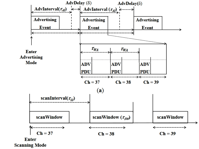 BLE Advertising process, Source: Analysis of Latency Performance of Bluetooth Low Energy (BLE) Networks